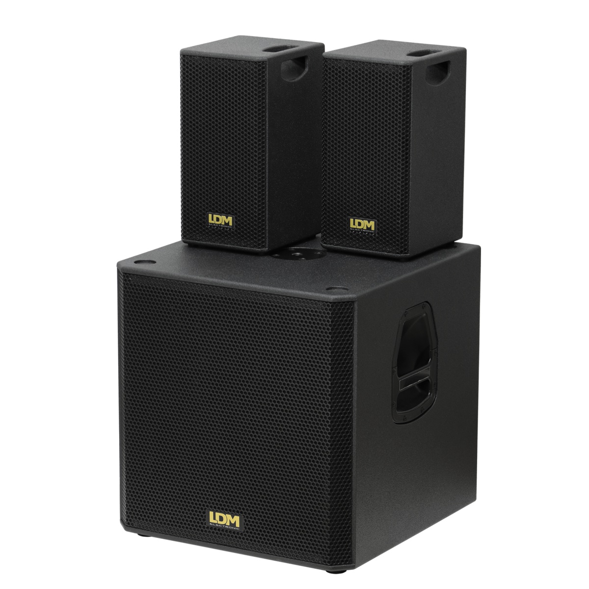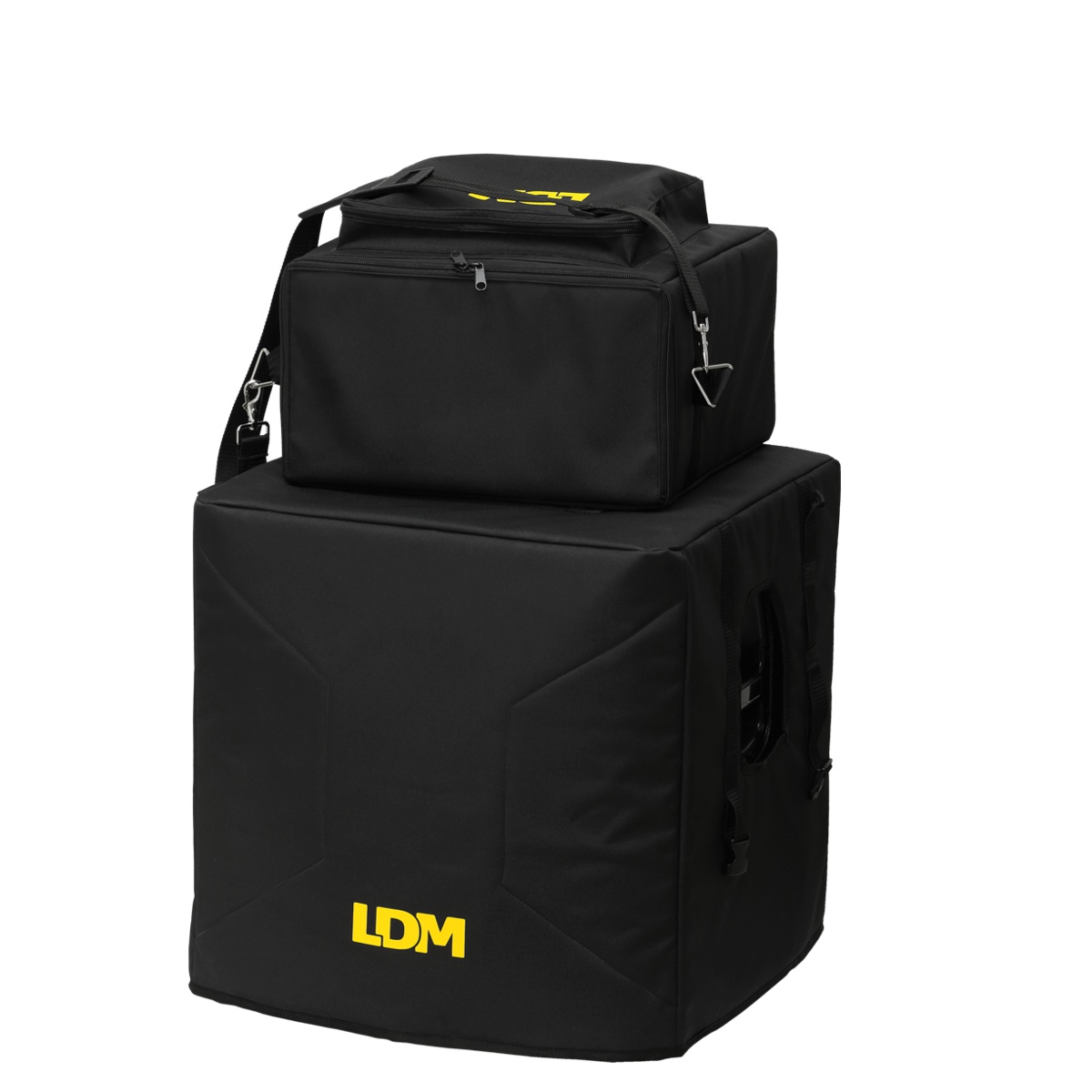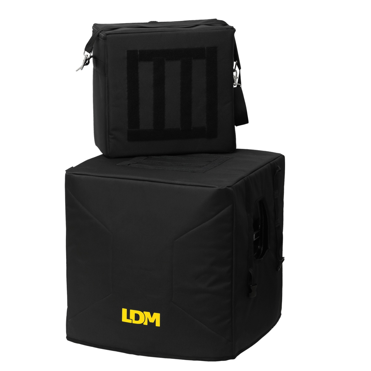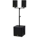 Stereofoniczny, przenośny, w pełni aktywny (bi-amp) system nagłośnieniowy 2.1, wyposażony w zestaw pokrowców, które chronią sprzęt i ułatwiają jego bezpieczny, wygodny transport.